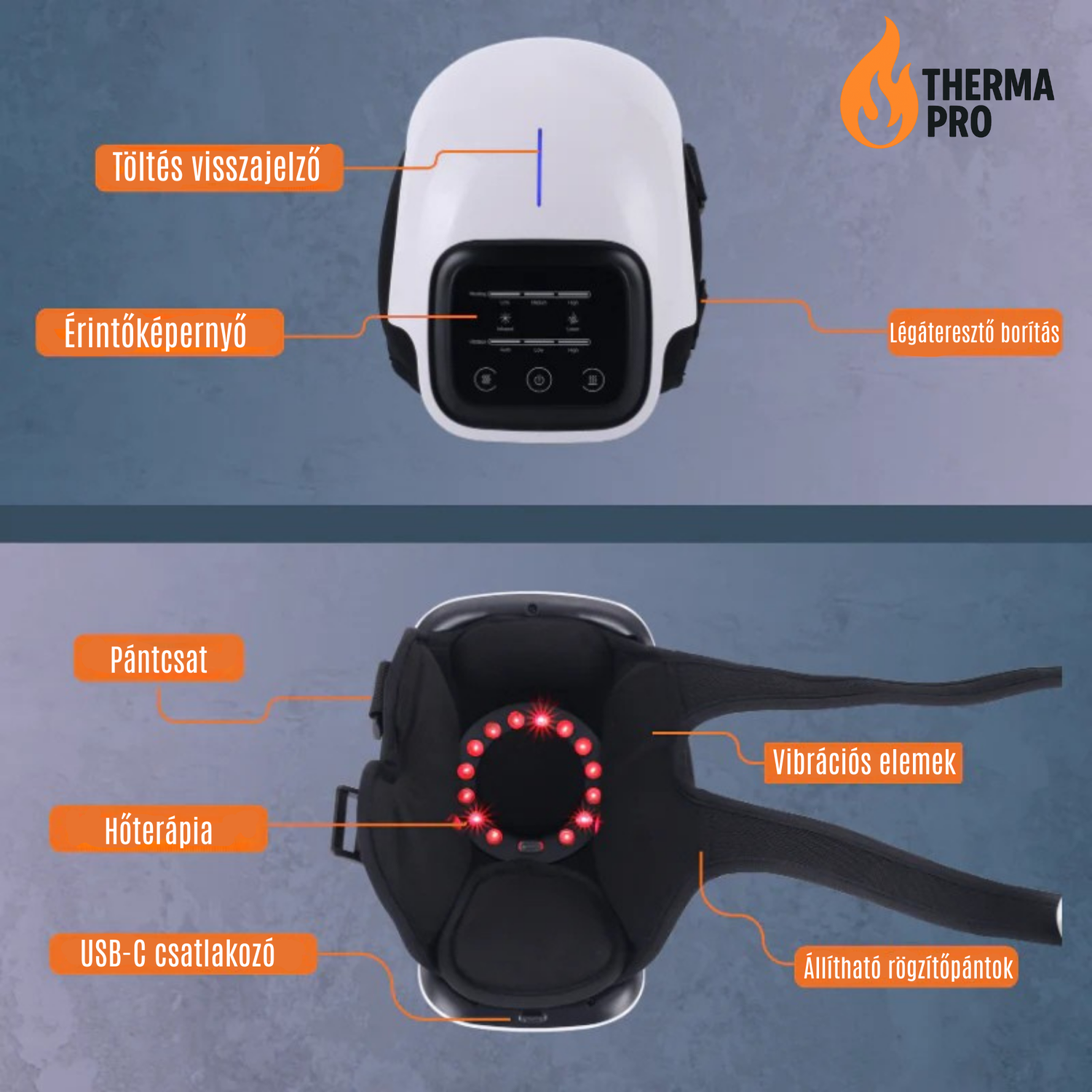A THERMA PRO prémium minőségű, puha anyagokból készülnek, amelyek kényelmes illeszkedést biztosít, miközben tartósak és ellenállnak a mindennapi használatnak. A beépített minőségi gyógyító technológiák – mint a fejlett hőterápia, az infravörös fény és a vibrációs masszázs – együtt olyan professzionális kezelést nyújtanak, amelyet korábban csak speciális terápiás központok által lehetett megtapasztalni.
